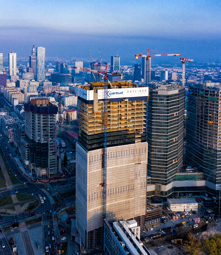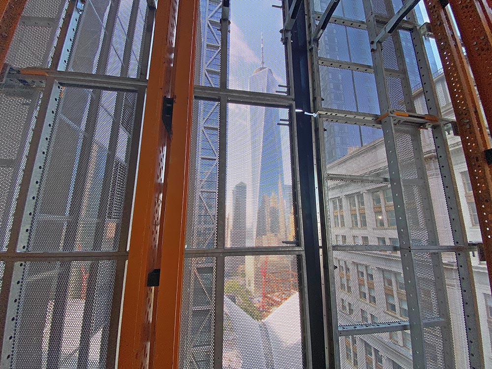 The HWS perimeter safety screen is a self-climbing system for ensuring perimeter safety during the construction of high-rise buildings. Based on the MK system, it is versatile, it can easily be adapted to different geometries and has various configurations according to needs: straight section, with working platforms, debris section, with option to lift materials to different levels, with access stairs, etc.
