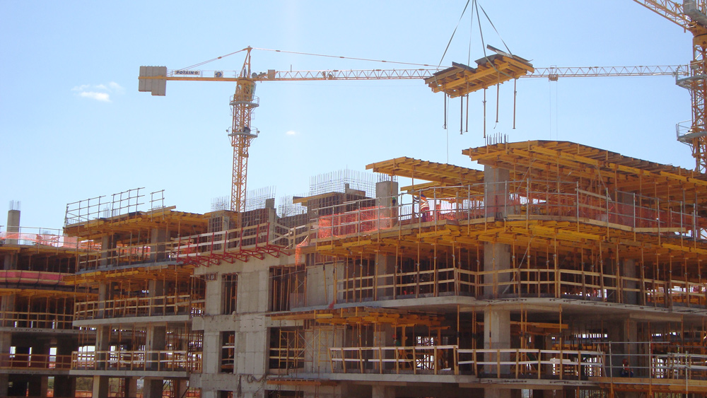 The new Head VR SP/EP, a new application of the VR Table system, meant a great success. This lighter head can be used with a very light prop, the SP. The system was used from the third floor on, on flat slabs without interference from drop or perimeter beams. This solution has reduced the cost of labour, since the tables are moved horizontally with the Trolley VR and vertically by crane, without the need for dismantling the assembly.