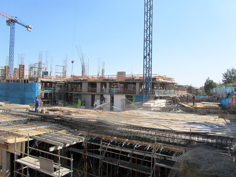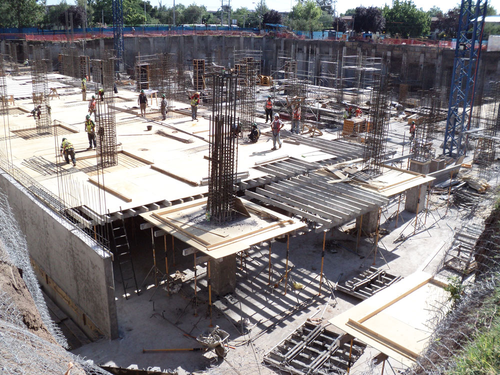 The post-tensioned slabs were built with the steel beam system BTM shored on SP Props. The shoring of the high access area was accomplished with T-60 Shoring. With easily assembled towers requiring few parts, these systems were widely accepted on the building site for their ease of overcoming unevenness on the ground and their great efficiency.