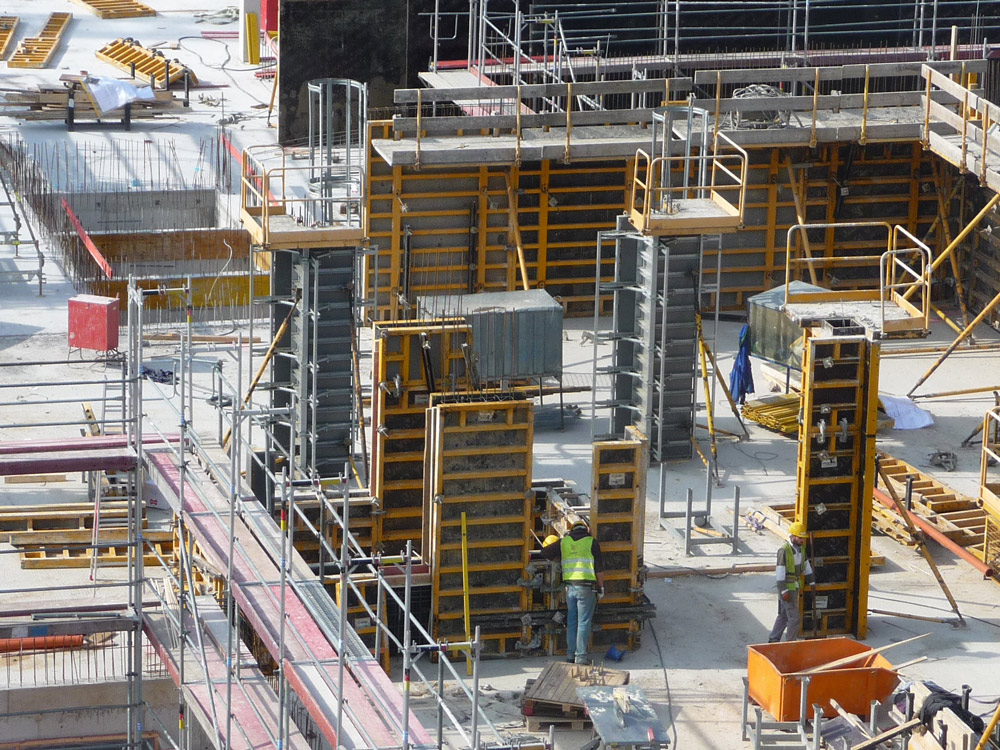 Eleven separate assemblies of F-4 MAX articulated formwork for columns were employed so as to complete the 115 columns required for each storey within the timeline specified by the architect.