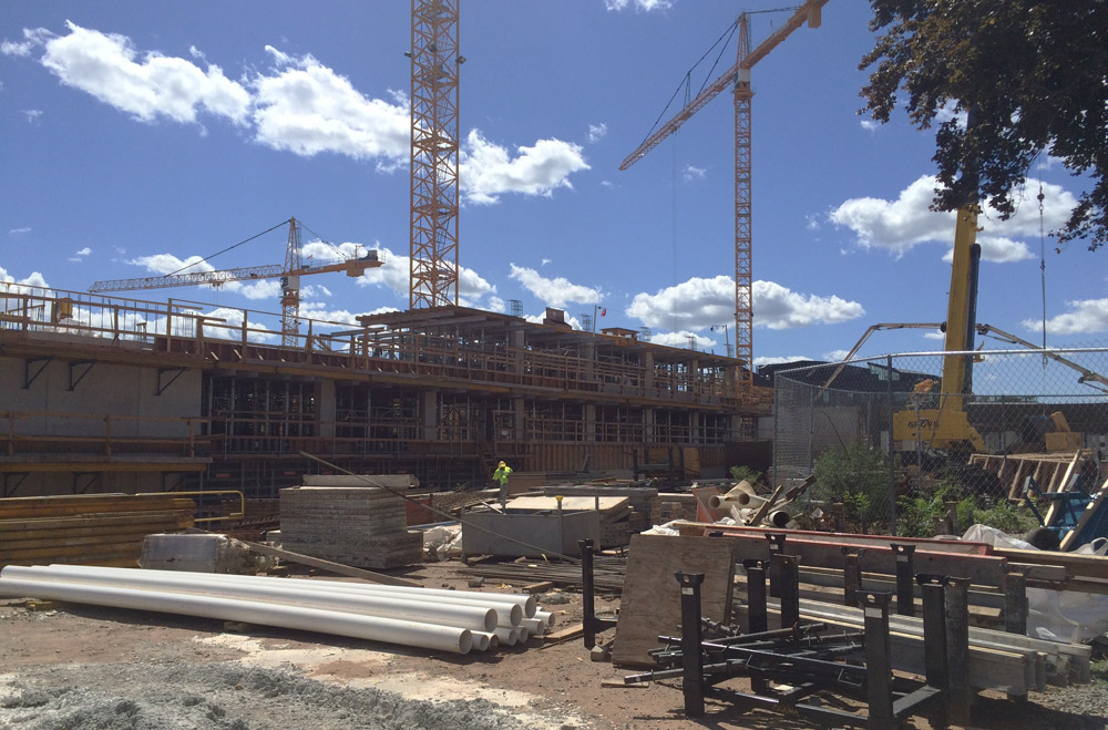 This $500 Million dollar project at Yale University in New Haven, Connecticut is adding a number of new residences for students at this prestigious university. These new residences are situated on a 6.7 acre triangle of land just south of the school's Ingalls Rink. Expected completion for the project is for the opening of the Fall 2017 semester. This project will consist of 300,000 square feet of elevated slab ranging from 12 to 27 feet high.