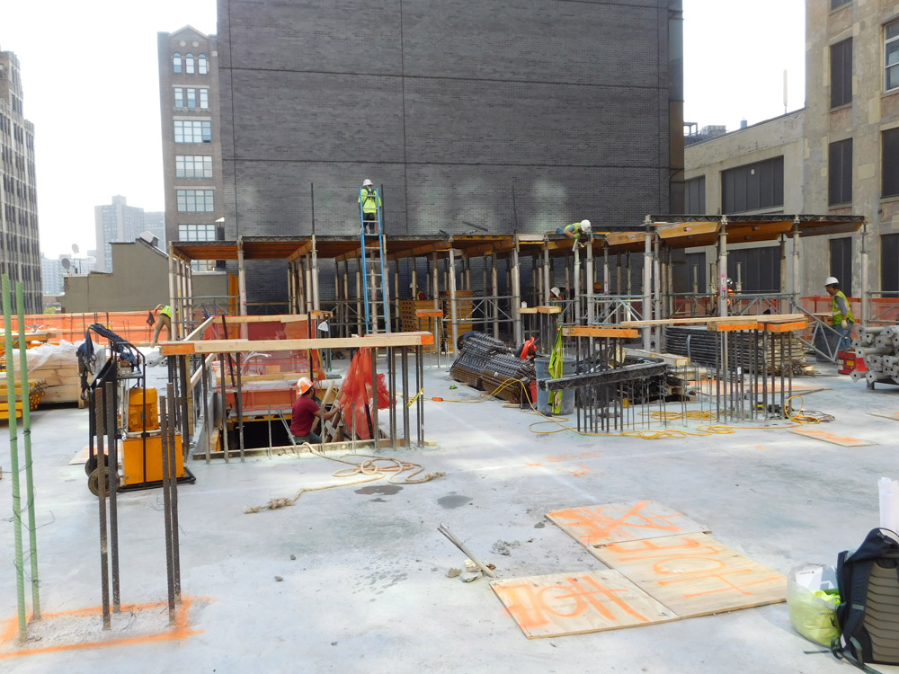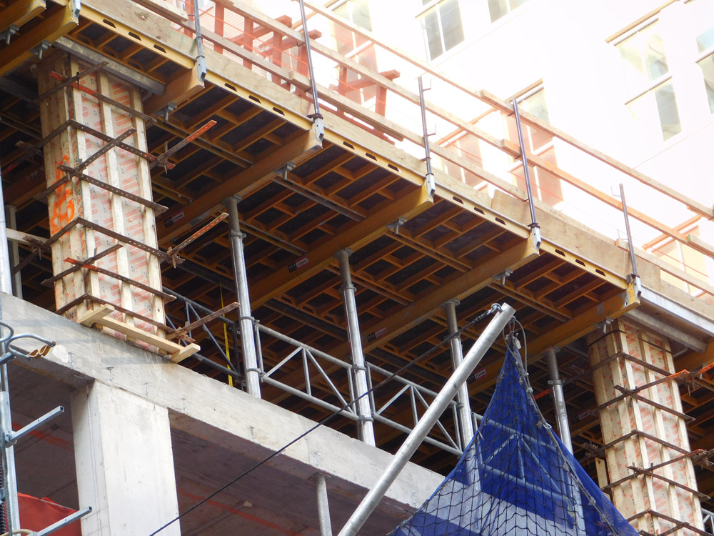 For both towers ULMA provided a RKS Climbing System and MEGALITE formwork for the elevator core and shear walls. This site had a highly restricted area for construction and equipment storage. In addition there was no on-site crane thereby limiting the use of a crane. Therefore the hydraulically-operated RKS Climbing System was the ideal choice for the contactor on this project as it requires limited space, no crane time (for its operation) and can be assembled in restricted areas on site. Since crane time was limited and the site was restricted, ULMA proposed using the MEGALITE hand-set forming system to most efficiently form the core and shear walls.