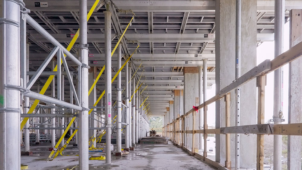 The CC-4 decking system was combined with its PERIMETER BEAM allowing for safe installation and cycling around the leading edge of the building. The CC-4 Panel Formwork is perfectly designed for any slab geometry and provides a high-quality finish.