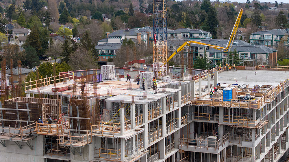 This redevelopment project is located in Saanich, British Columbia, within the Greater Victoria area. The 6-storey building sits over one level of underground parking which will accommodate residential care, assisted living, and affordable housing units.