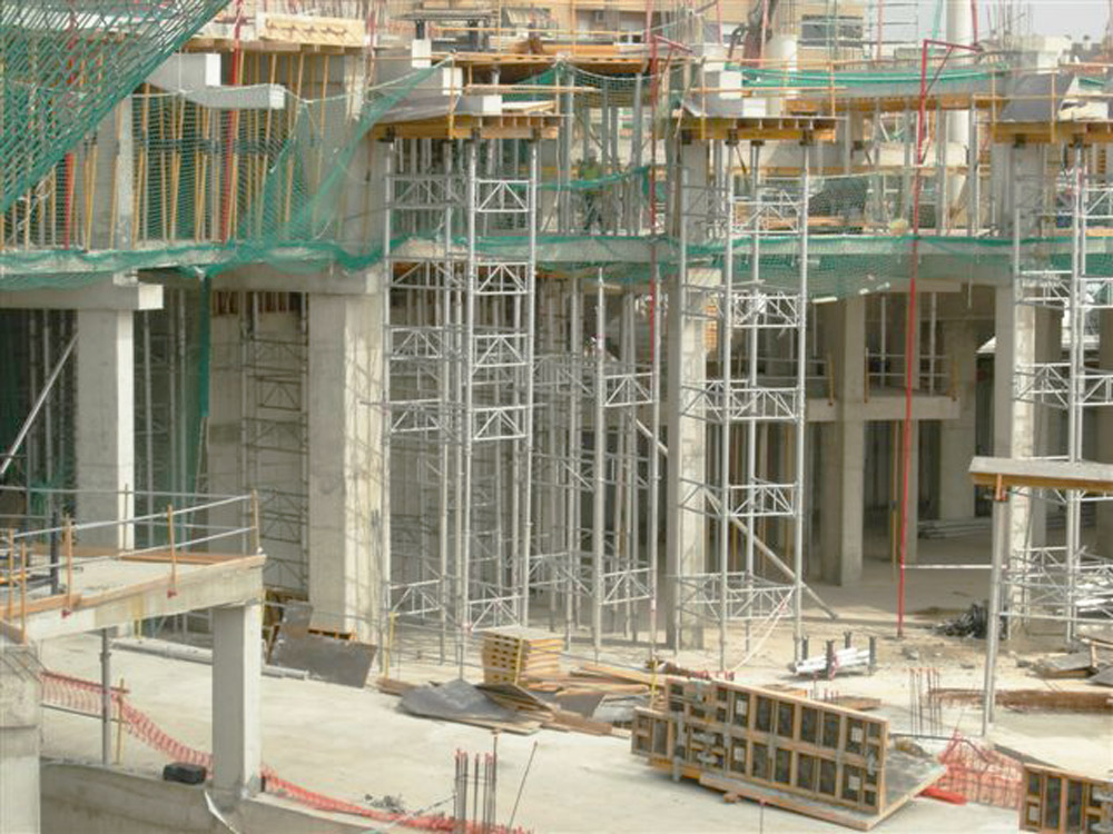 The CC-4 system provided the advantages related to aluminum, such as lightness. This product enabled the prior assembly of the grid and the subsequent placement of the working platform. It has a single remaining element, the drophead, which sped up the forming and stripping times, and facilitated the recovery of the material without any part falling to the floor. The profitability of the project was ensured since through the use of this system, combined with others such as VR Tables and ENKOFLEX (for stairs), it was possible to rotate teams with the subsequent reduction of necessary material.