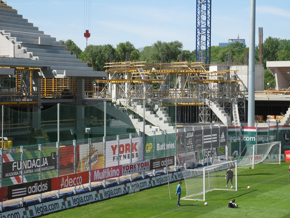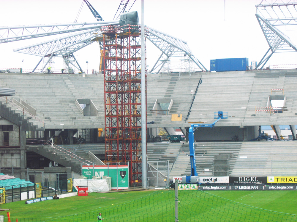 The aim of the expansion and modernization of the Legia stadium was to comply with the established requirements for being able to play UEFA Cup or Champions League games. Part of the construction work consisted of demolishing three stands, maintaining only the historic facade of the fourth one. The space under the eastern and southern stands has been designated as a 790 vehicle parking facility. The stadium has also been equipped with new locker rooms, press center, restaurants, and various services in the north stand, while the VIP area is located in the west stand.
