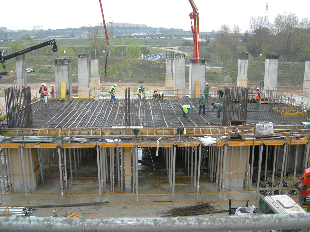 Quality and speed were the goals of this project. CC-4 Horizontal Formwork was used for the solid slabs, applying the standard solution for the column heads. There was an average of 6,000 m2 of material placed on site.