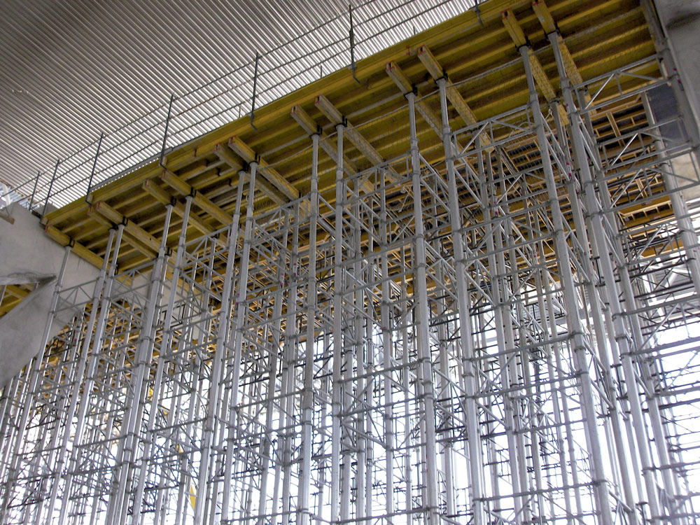 Just like the beams, the 1.5 m square base columns, with a height of almost 9 m, required a high quality finish. For this, ENKOFORM V-100 Vertical Formwork was assembled on site, which allowed for a single concrete pouring.