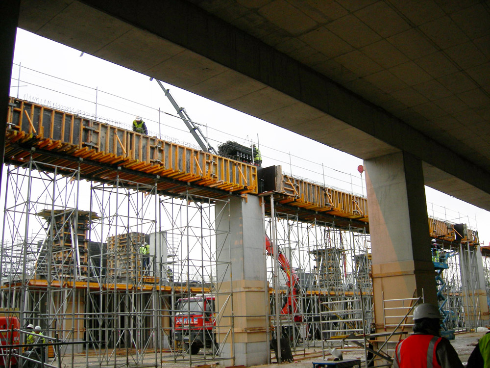 The project contemplated 1.5 m thick fair-faced concrete beams with an excellent finish, which were made with ENKOFORM HMK formwork and shoring towers. So both systems, used frequently in civil engineering, displayed their versatility.