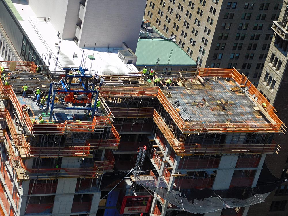 The client chose CC-4 modular aluminium formwork to pour the slabs for all of the building’s 30 storeys. The system’s drop-heads make it ideal for spaces where safety requirements are exacting; moreover, rapid material recovery reduced onsite material needs as well as dependence on crane assistance. The system’s low prop per m² requirements facilitated greater under-slab mobility and eased material transport, considerations which become progressively more important as the building increases in height.