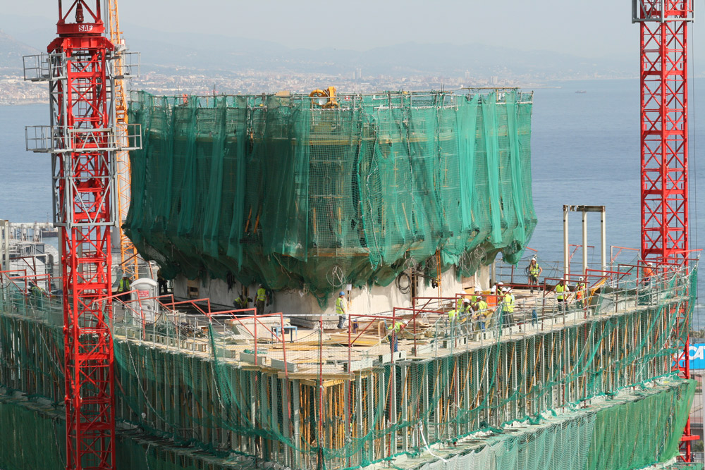 The Climbing System 2000 with shaping timber at the inside corners eased the adaptation to the trapezoidal geometry of the core.