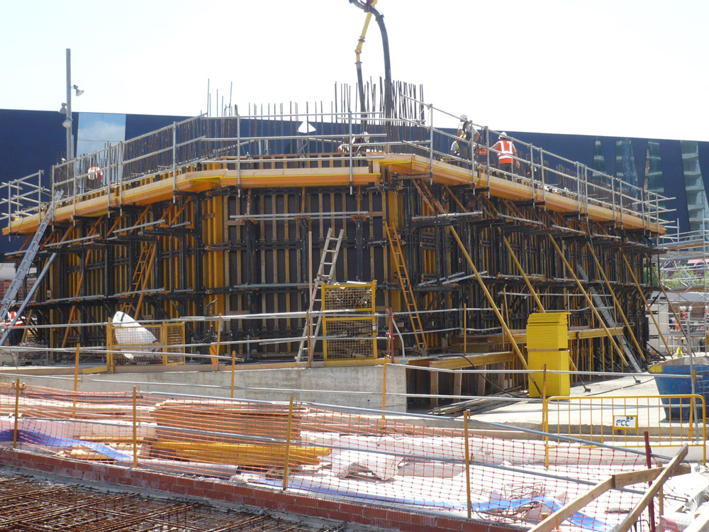 The central core has been poured two floors ahead of the slabs with Climbing System 2000 and ENKOFORM V-100 formwork. Most slabs were built with RAPID slab formwork and in some cases with ENKOFLEX.