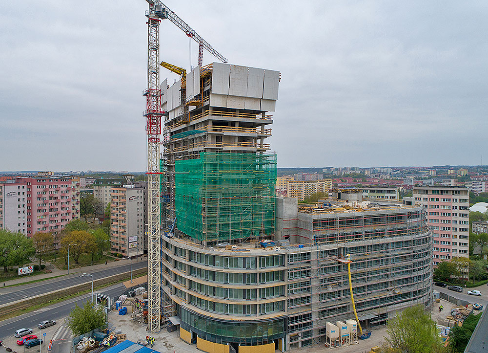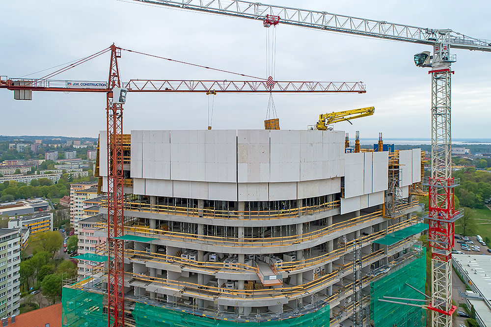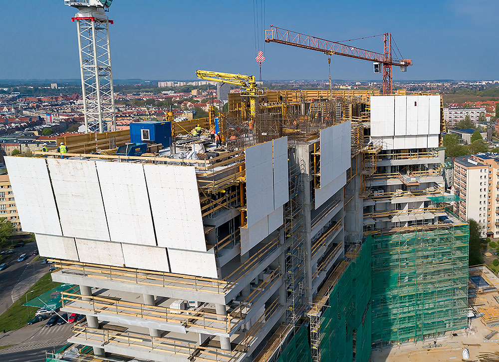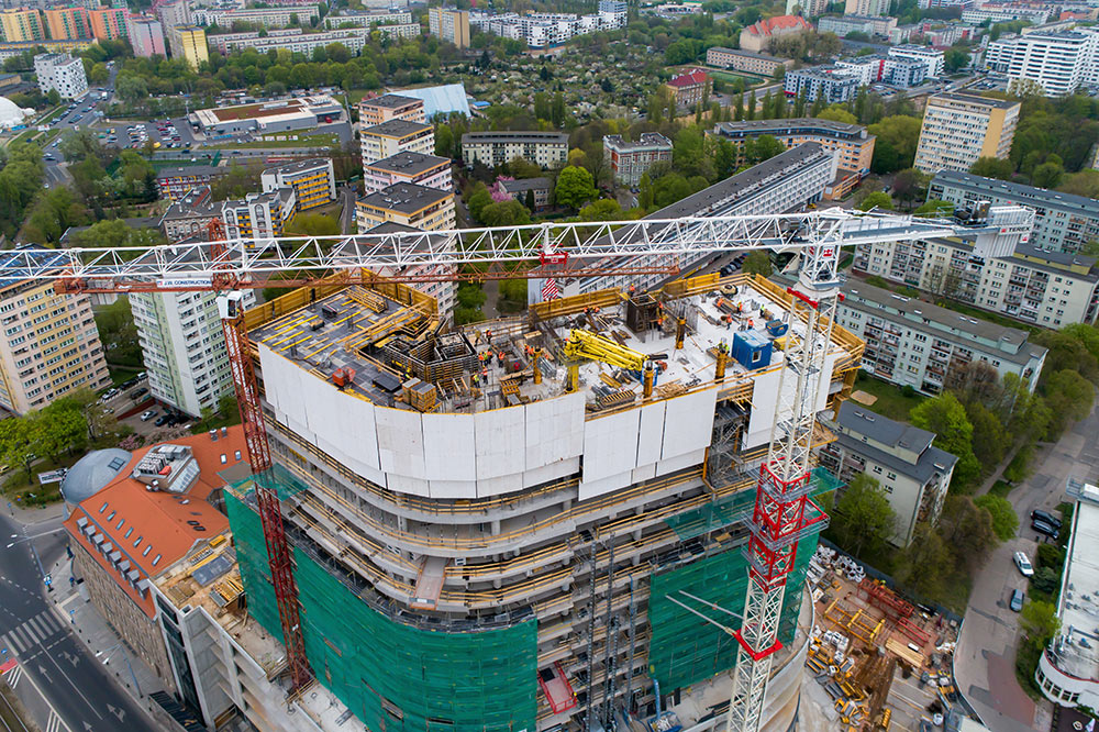 For the exterior of the building core, the flexible and safe RKS Rail Climbing System was chosen not least for is ability to advance without separating from the wall structure using the same hydraulic equipment used to lift HWS assemblies.