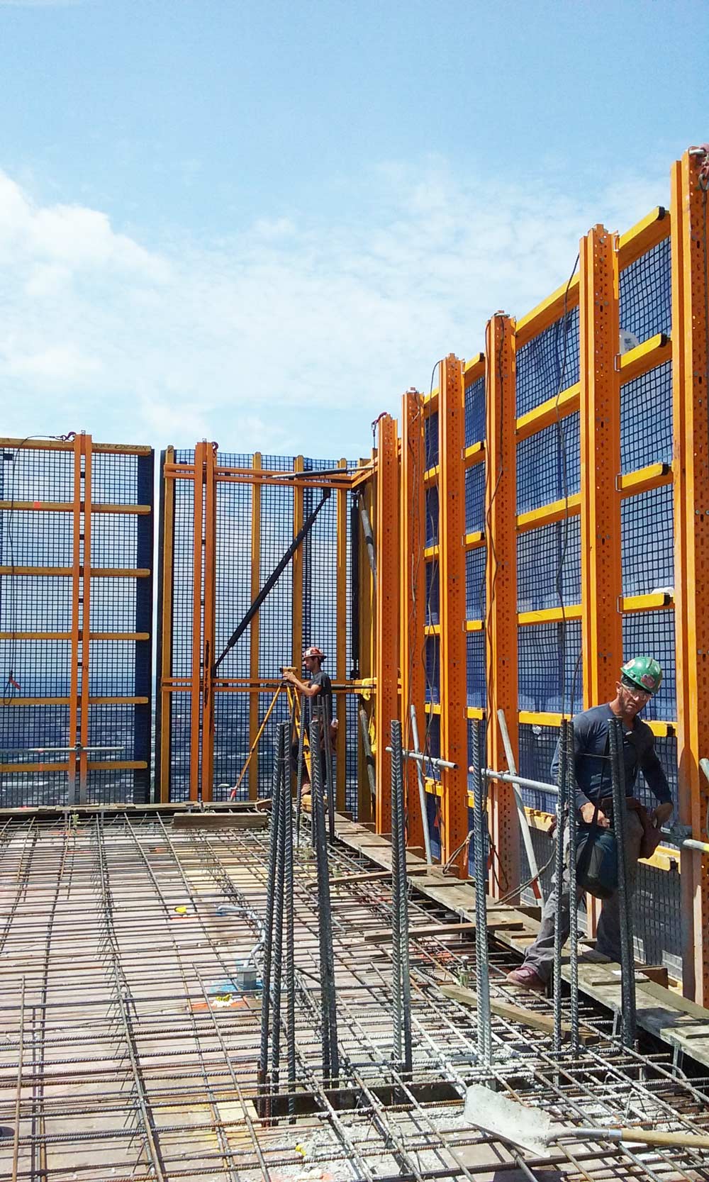 The tower perimeter was protected with HWS Screens, a safety system composed of straight lightweight panels used without working platforms. Movement on the worksite was thus streamlined and both workers and equipment were protected from falls.