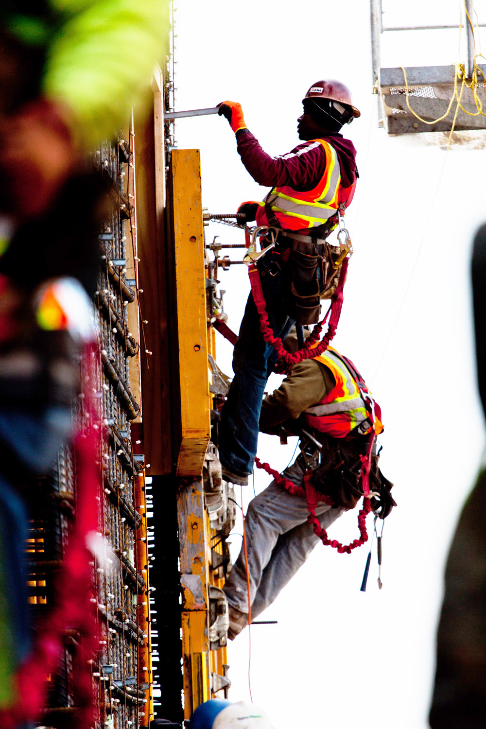 The high efficiency of work processes and the structure itself enabled cycles of 5 days per pour of 13.5 feet.