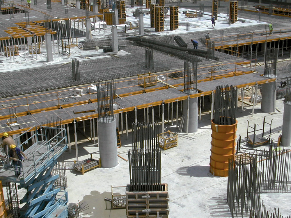 The 6 underground floors and the first 6 floors above ground level were completed with CC-4 aluminum horizontal formwork, along with the ALUPROP Prop, with which high construction performance was obtained. One of the most important advantages that the CC-4 provides, compared to other products on the market, is the possibility of first assembling the grid and then placing the panels.