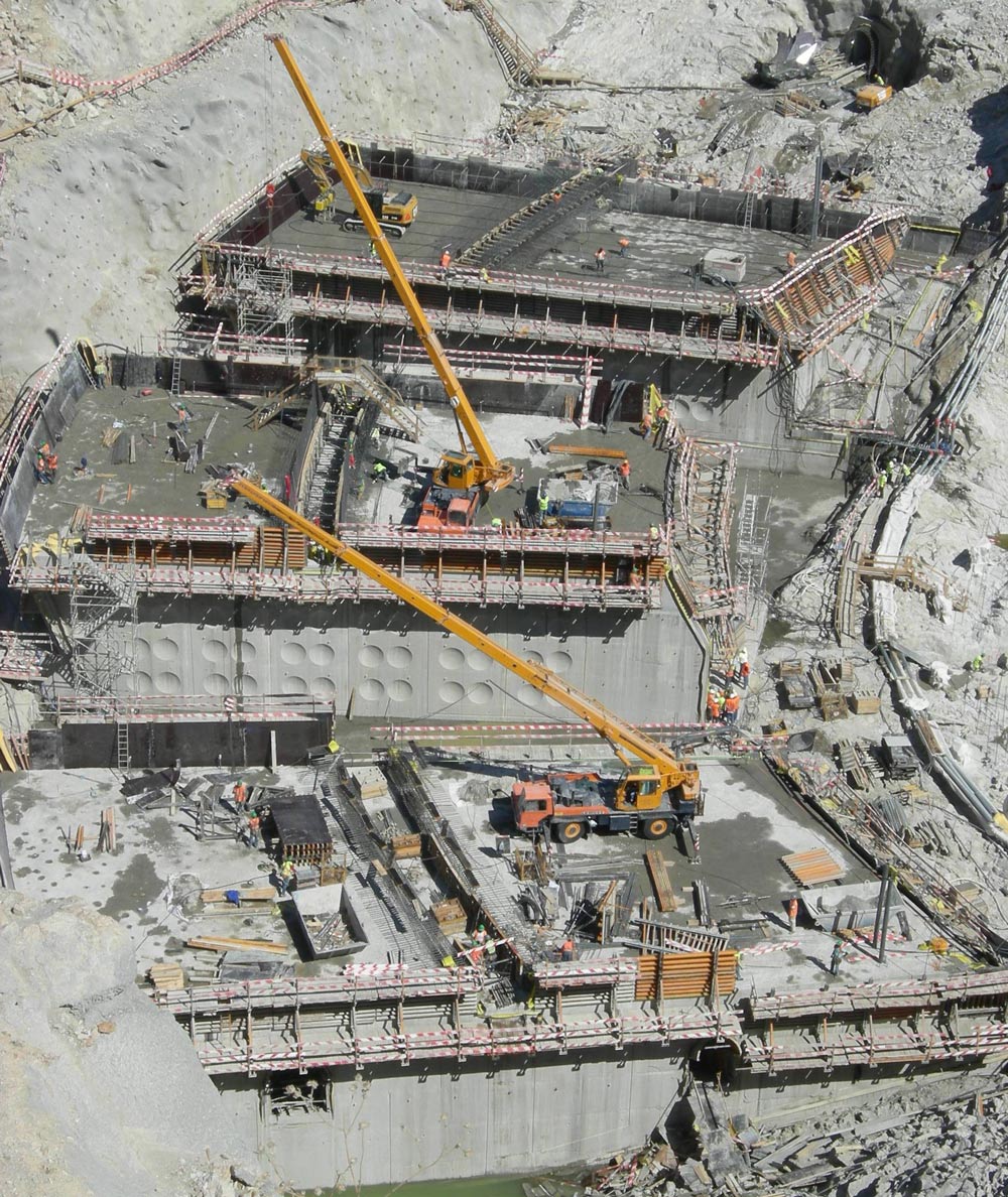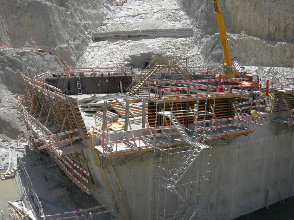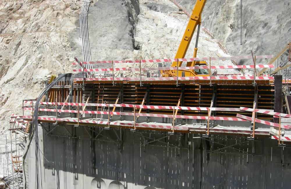 Working at great height was conducted by following the highest safety standards. G Climbing Brackets and Climbing Brackets 2000 enabled the installation of large working platforms remaining horizontal at all times regardless of the inclination of the dam wall.