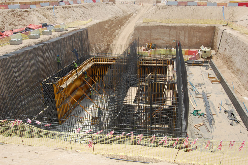 The Jebel Ali Sewage Pumping Station in Dubai has an area of 300 m², with walls between 2.2 m and 7.3 m high and 25 cm thick slabs.