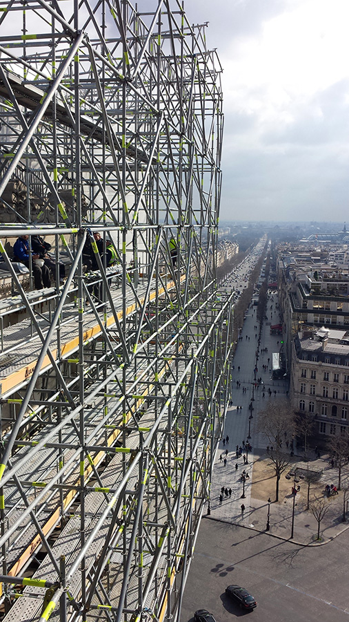 Considering the large quantity of daily visitors, another major challenge of the project was to allow for continuous tourist access to the Arc de Triomphe terrace.