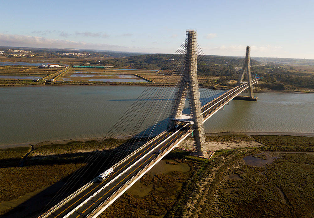 The International Bridge over the Guadiana River joins Spain and Portugal. Since its original construction in 1991 it has become a symbol of the union between the two countries that compose the Iberian Peninsula.