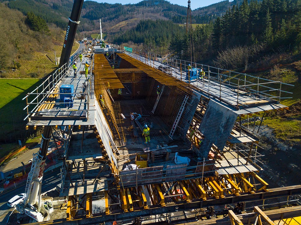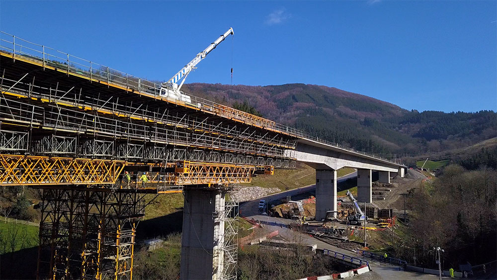 The Antzuola Viaduct is one of the many structures that make up the high-speed train corridor in Basque Country, Spain. The complexity of the project, due to mountainous terrain combined with tight deadlines, required technologically advanced products, response capacity, and material provisioning in strict accordance with the client’s demands.