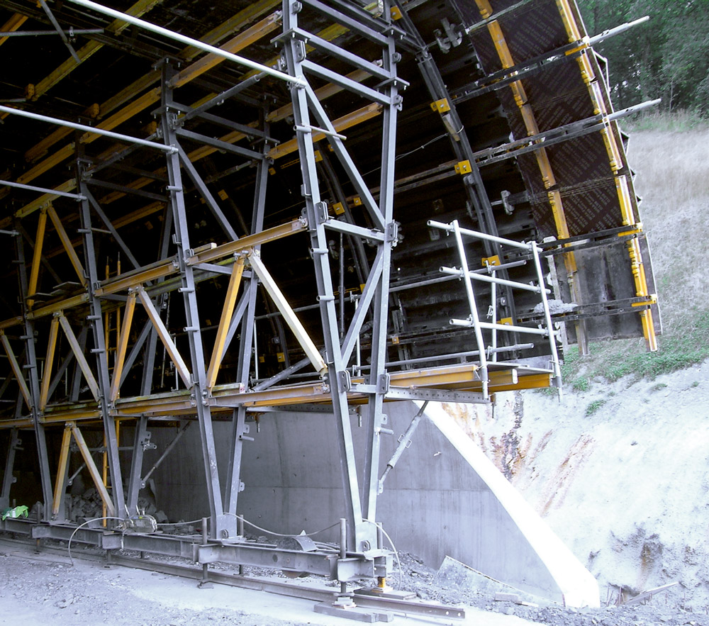 ULMA's Engineering Division designed a light structure able to move a large BIRA Vertical Formwork area without the need of external auxiliary means. An impressive performance was achieved while keeping high safety standards and low execution costs. This was also possible thanks to the use of a hydraulic drive for both longitudinal movement along the tunnel axis and for the formwork stripping.