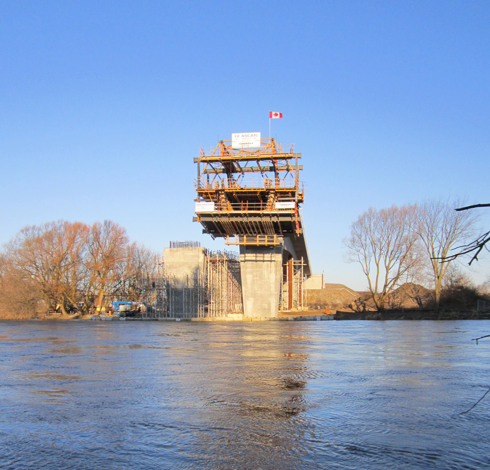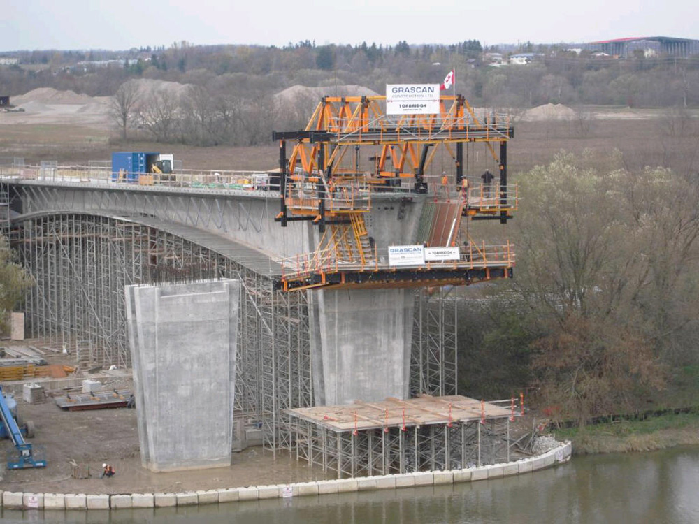 The construction method of on-site incremental segments for the longest span turned the bridge into the first one built in Ontario with this technique since the 80s. ULMA put the most advanced system and experienced specialists in the application of the system at the disposal of the customer to construct a bridge suiting a mountainous geography with a technique rather popular in Europe.