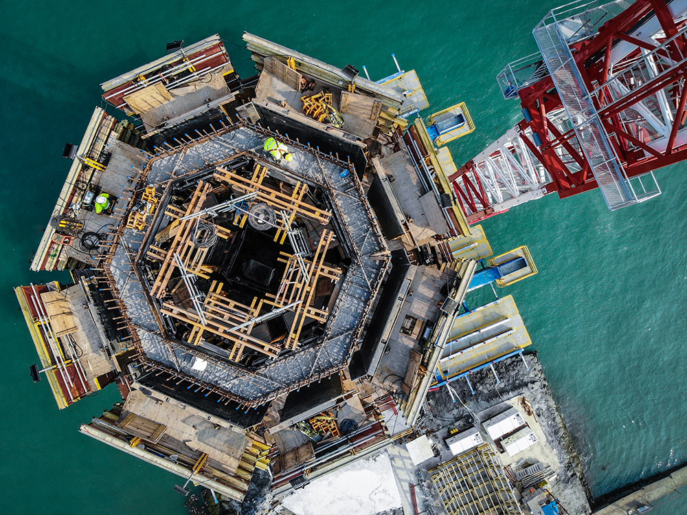 All systems were designed to ensure the ease and safety of work, as well as the productivity of the entire construction process. In fact, fully enclosed work platforms were designed so that it was possible to carry out the work even in extreme wind conditions, typical of the area. The configuration of the ATR Self-Climbing System was designed specifically to meet the requirements of these two pylons, utilizing three working platforms. The main platform for was used for bearing loads, reinforcement work, and offsetting the formwork; the intermediate platform housed the hydraulic system, and the third platform was used for cone recovery.