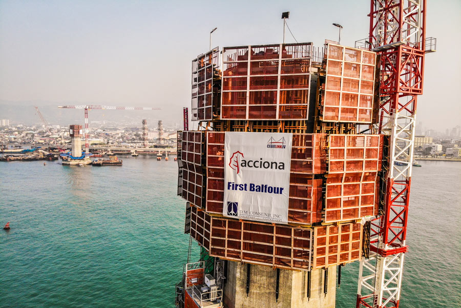 The project consists of two 150 m octagonal pylons, varied on all faces. The ATR Self-Climbing System not only adapted to the height and geometry of the pylons, but also to the presence of a 50 m high ornamental metal cross embedded in the concrete, a tribute to Magellan's arrival in Cebu. Likewise, the system proved sufficiently flexible during pouring to adjust to the presence of the cable anchors embedded in the wall. This presented a significant interference in the interior of the piles during Phase 3, though it was foreseen in the initial design of the solution.