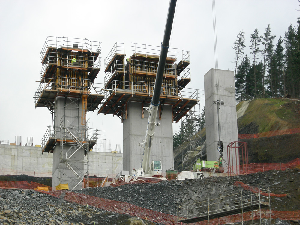 Being 223 m long, each deck is supported on four piers with a maximum height of 41 m and a span between piers of 49 m. A special construction process with less supports on the ground was applied to minimize the environmental impact.