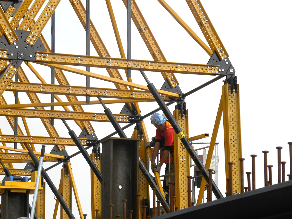 The light weight of the MK system components eases the manual assembly of large structures. This way, the use of the crane remains reserved to the lifting of structure modules previously assembled on the ground. This was a fundamental factor to reduce costs of the project.