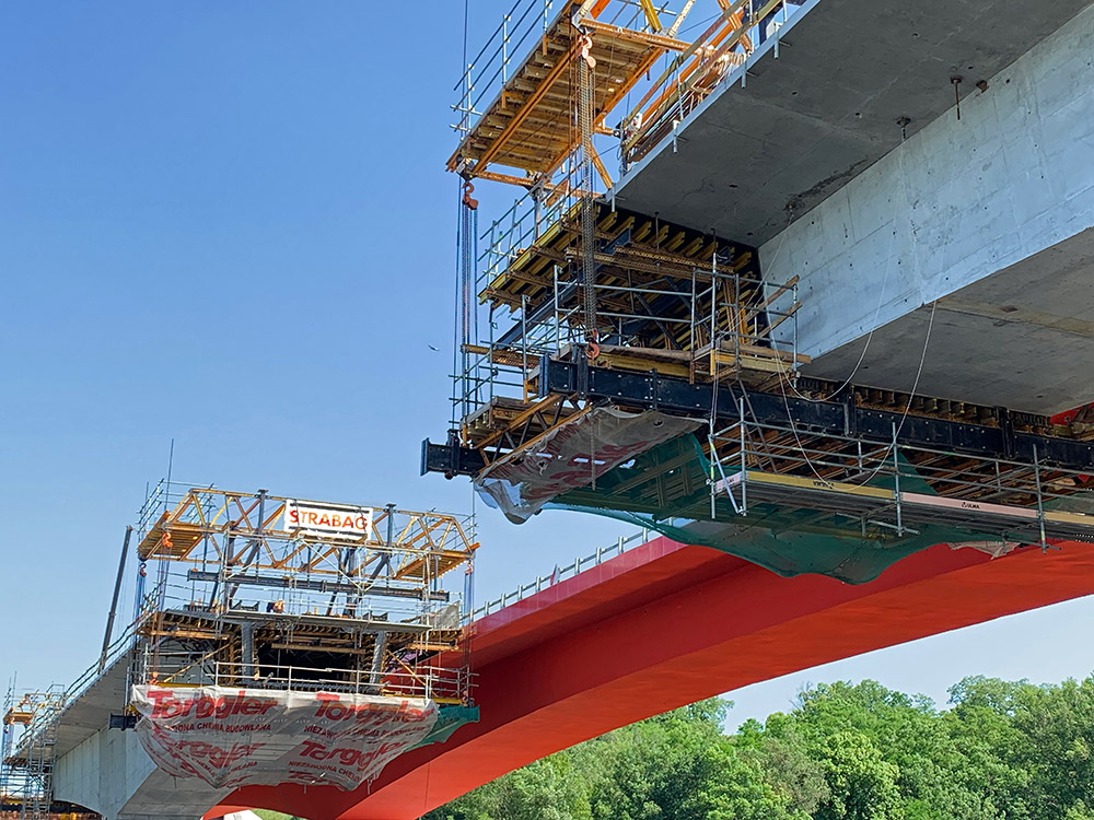 After working with ULMA to execute the first carriageway, STRABAG chose ULMA again as supplier for formwork technology and solutions. The MS-4B Bridge, spanning almost 500 m, is designed as a prestressed box-section concrete structure.