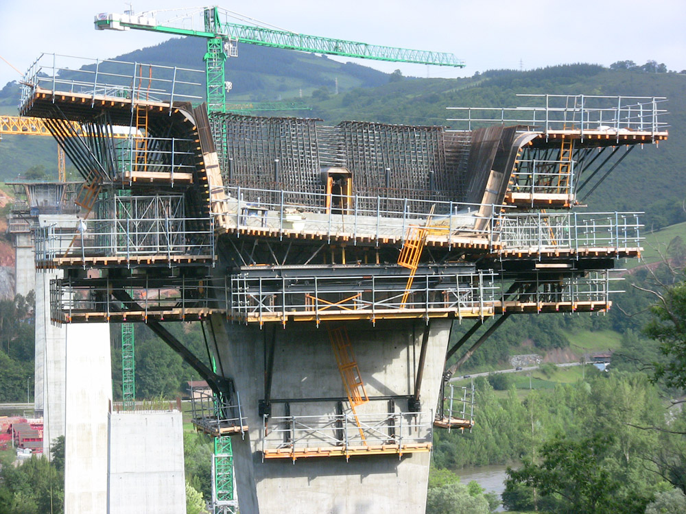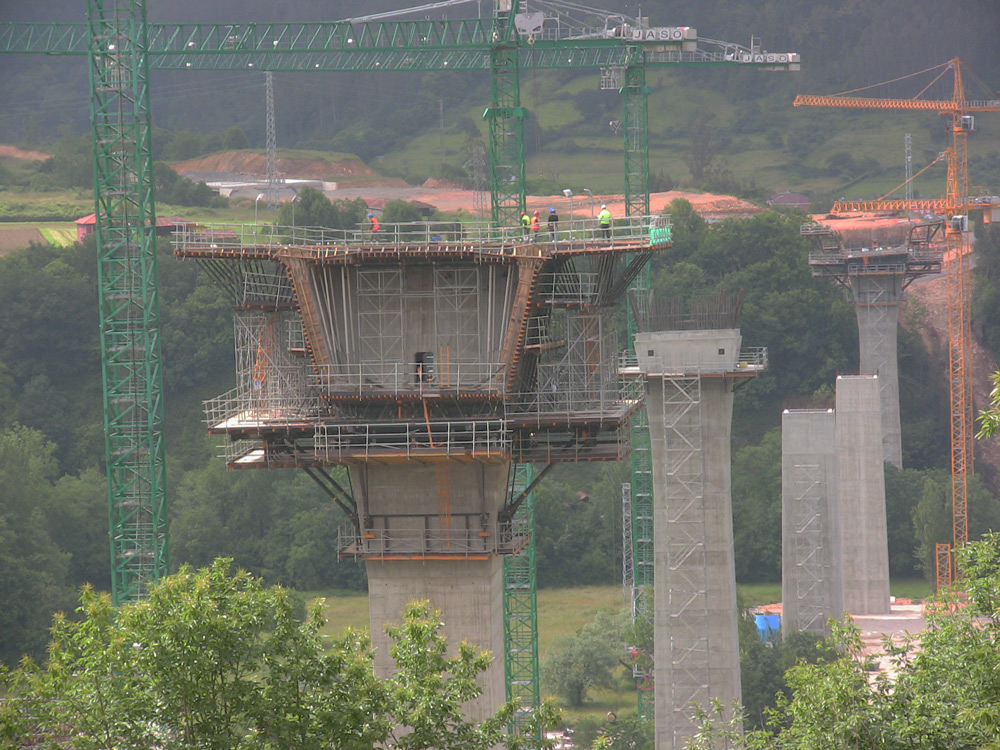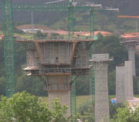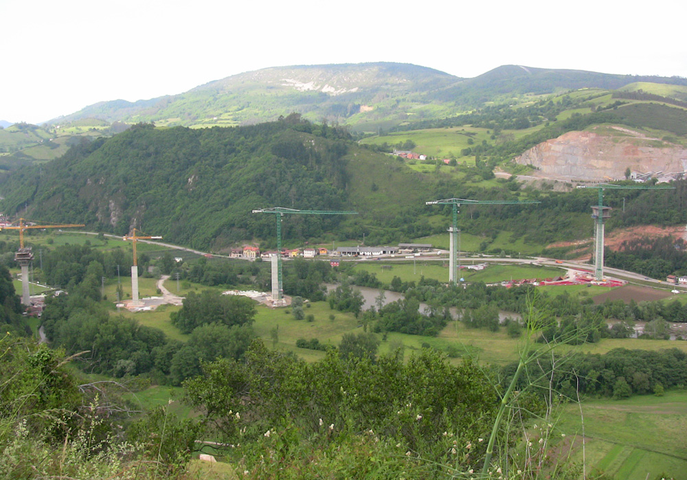 This viaduct is the main infrastructure of the Espina A-63 motorway in Asturias. Its 900 m length and 160 m spans between piers makes it the bridge with most successive cantilevers of Spain.