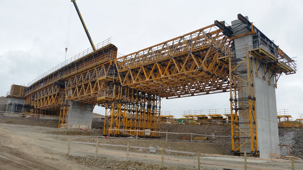 The modular MK System was used to span lengths of 35 m, 45 m, 75 m, and 95 m, respectively, in the approach spans. Forming trusses, shoring towers, and formwork assemblies, this system provided significant savings in diverse applications