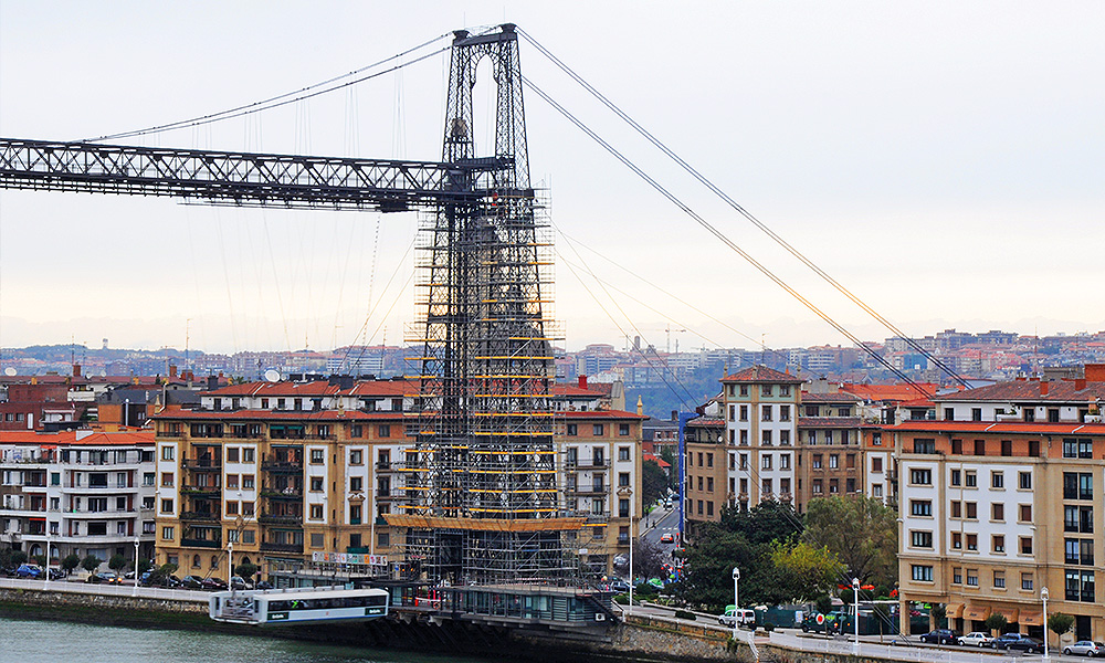 SOLUTION The bridge was completely covered with BRIO multi-directional scaffolding. Using 800 t of material, four 68 m high towers were installed directly on the ground, while 162 m of working platforms were suspended from the truss supporting the bridge deck.