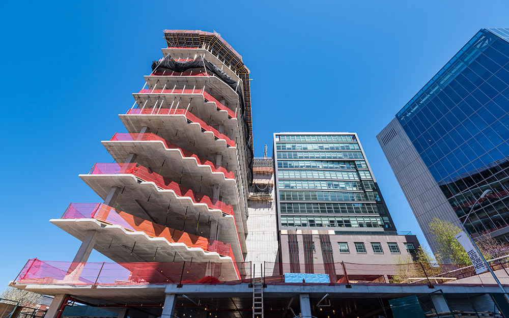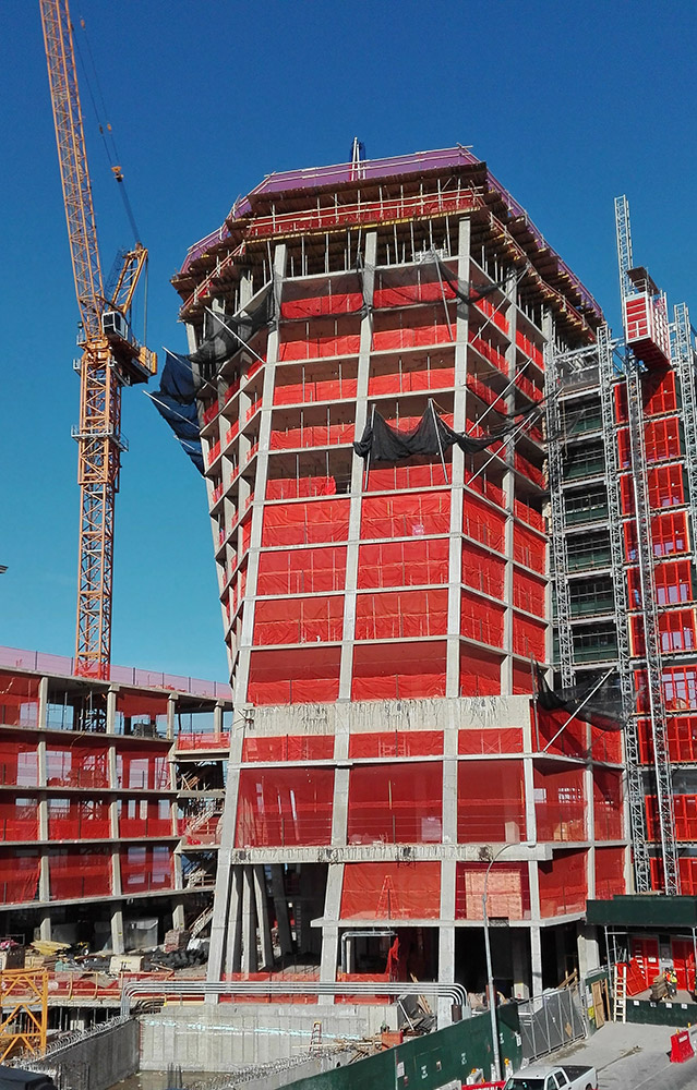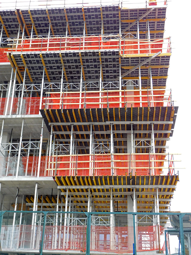 For the special architectural perimeter and corner conditions, the ENKOFLEX system was best suited for irregular geometries to build the non-typical areas. The system is designed with independent and lightweight components and it is easily adaptable to any slab configuration. The customer can adjust the V-20 beams to the different slab and heights configurations depending on the grid used.