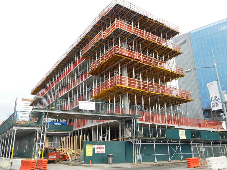 Both shoring systems are compatible and worked in combination to keep the work schedule pace.