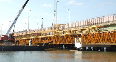 One of the most important works of this plan is the expansion of the Paulo Guerra Bridge. It is Recife's first cable-stayed bridge, completely independent from the existing one. For bridge construction, the traffic flow was not affected at any time. The 560 m long and 12 m high bridge has a 97 m long cable-stayed stretch supported by fourteen steel cables, seven on each side.