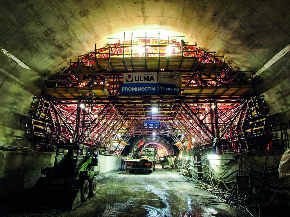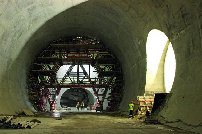 The combination of MK structure and MK formwork is a light form carrier that builds the bored tunnel in successive stages. The forward-moving and levelling system, both hydraulic and manual, is built-in into the structure itself, as are the working platforms, access and safety items.