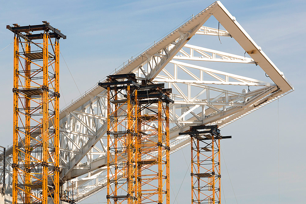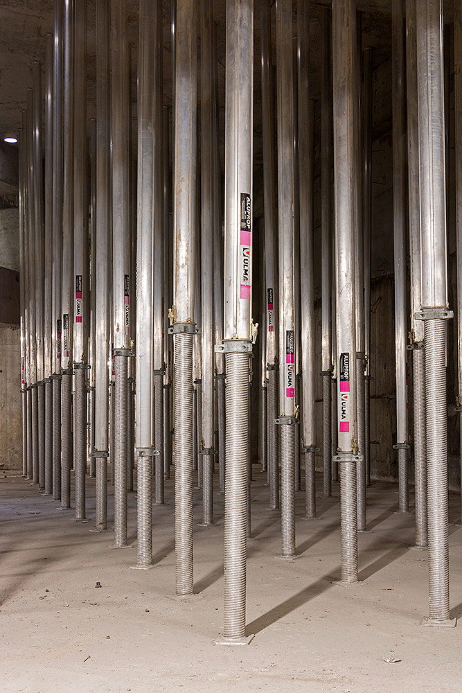 Twelve MK Shoring Towers were employed to support the eight ceiling structures weighing 550 tonnes each. Towers were configured with four or eight feet and a maximum height of 26 m, depending on the load to be borne.