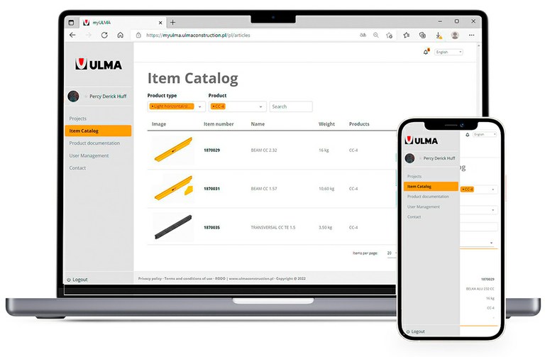 myULMA customer portal provides you with a comprehensive overview of your project status, stock on site, invoices, and permissions’ management to create, edit, and delete users with individual permissions to projects and sections.