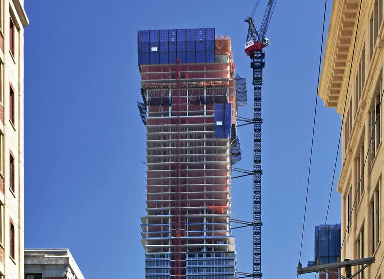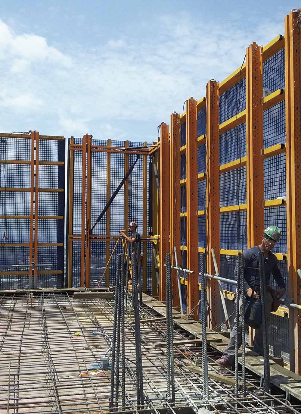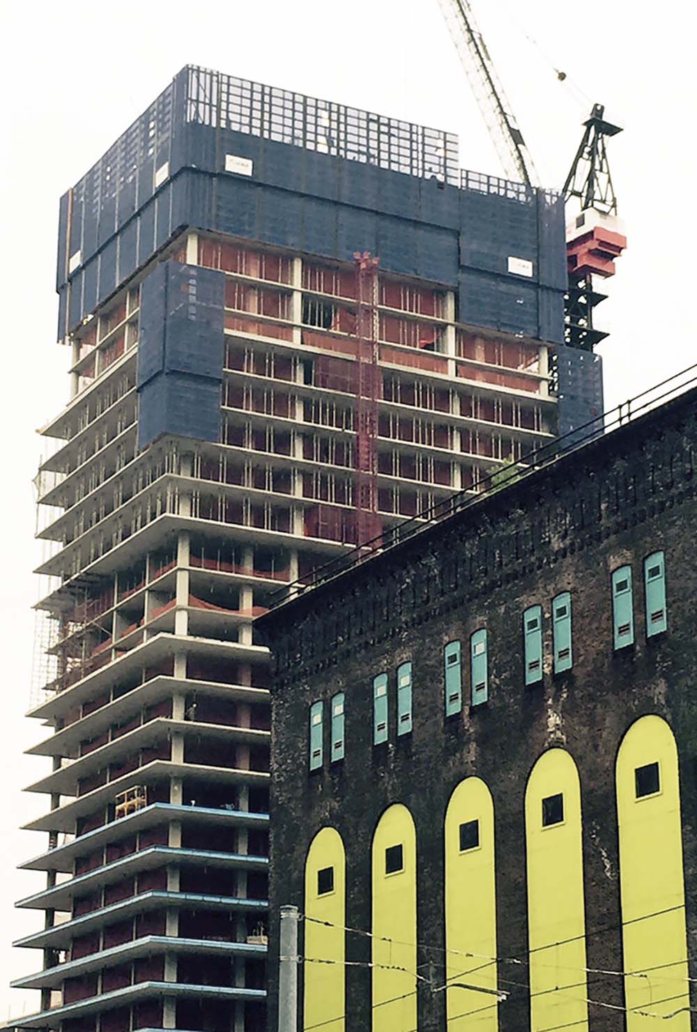 The tower perimeter was protected with HWS Screens, a safety system composed of straight lightweight panels used without working platforms. Movement on the worksite was thus streamlined and both people and equipment were protected from falls.