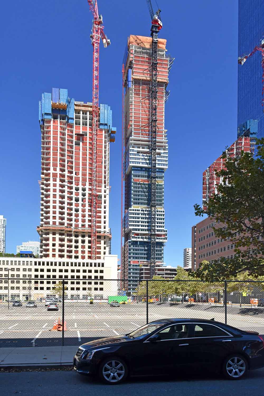 A series of buildings are being constructed along the banks of the Hudson River with spectacular views of Manhattan. The Harborside Tower was designed with 69 storeys, 763 residences, and a total height of 214 m. It is now the tallest residential building in New Jersey.