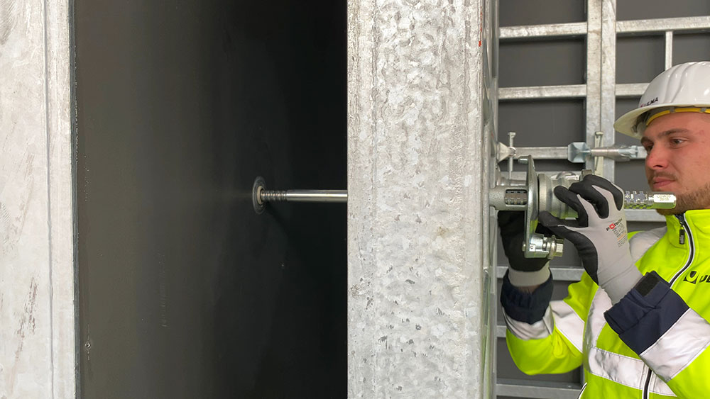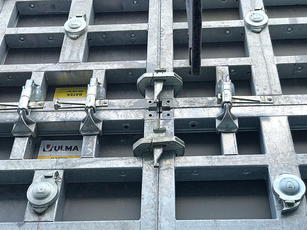 - Jusqu’à 50 % de baisse des délais de coffrage et de décoffrage grâce au système d’attache unilatéral.