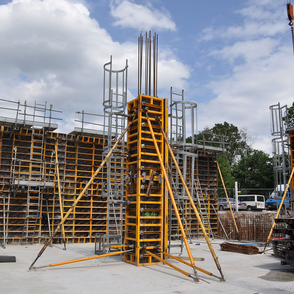 Le coffrage modulaire ORMA est idéal pour la construction de diverses structures de béton verticales, aussi bien dans la construction d'immeubles et les projets de travaux publics (murs, colonnes, culées, semelles de fondation).
