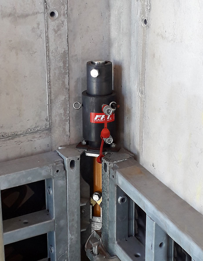 - Décoffrage rapide et sécuritaire grâce aux coins de décoffrage à entrainement hydraulique.