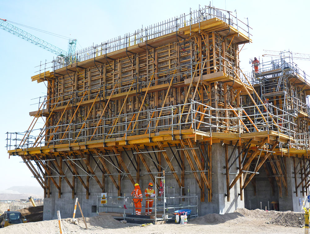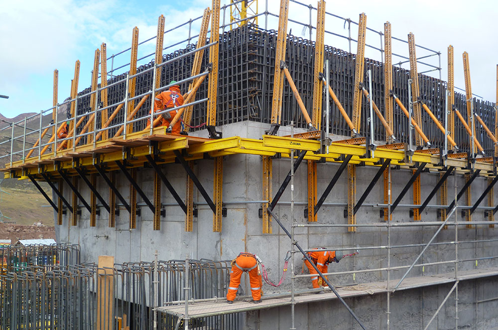 - Coffrage de 35 m2 de surface par paire de supports grimpants.