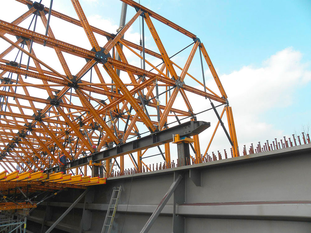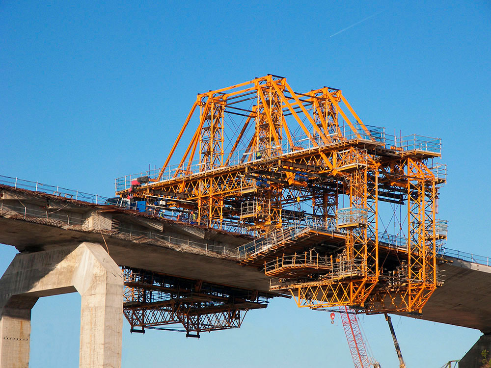 - La taille et la conception varient selon le porte-à-faux des brides du pont. La configuration de chariots de coffrage de brides légers peut être faite pour la construction de brides de petits tabliers ou de chariots lourds pour la construction de brides de grands tabliers.