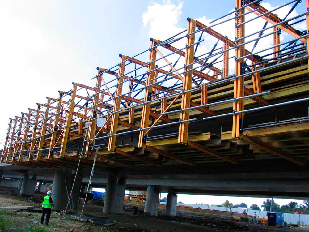 Le chariot de coffrage MK pour parapets est un système de coffrage léger et flexible utilisé pour la construction de parapets de protection sur les ponts ou comme solution pour des besoins de charge significativement moindres.