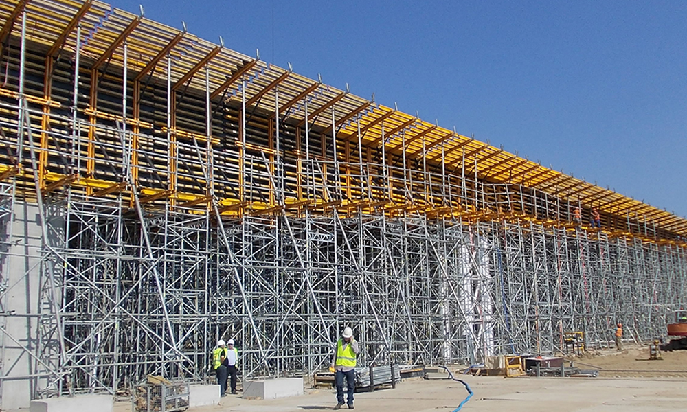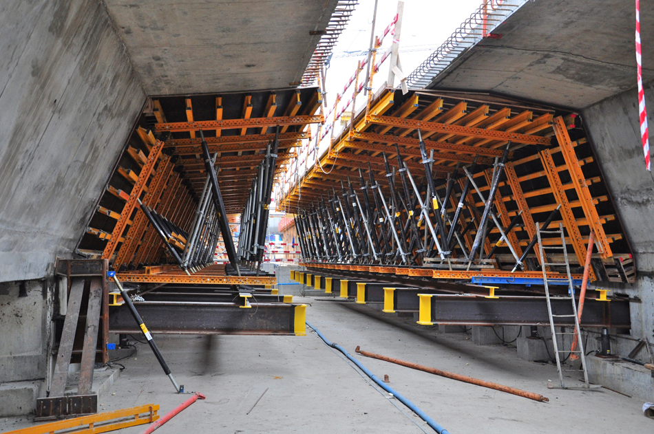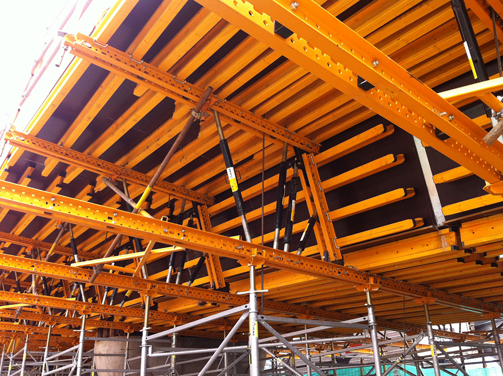 ENKOFORM HMK est un système de coffrage horizontal reposant sur des poutres qui est adaptable à diverses géométries dans le domaine des travaux publics.